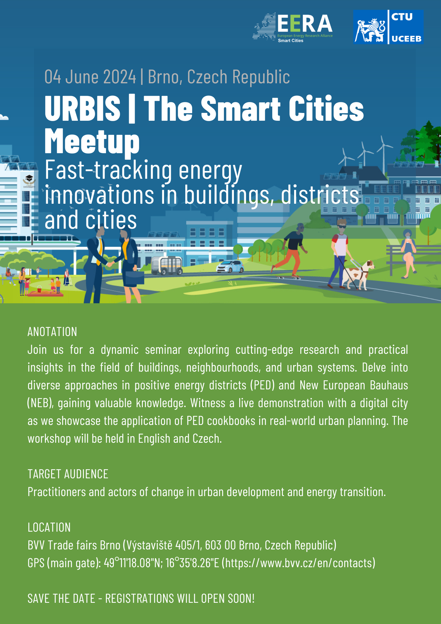 On Day 2 we will present applied research on innovation in urban environments carried out since 2013 by EERA JPSC at the BVV Trade Fairs Brno through a dynamic seminar within the URBIS Smart Cities Meetup: Fast-tracking energy innovations in buildings, districts and cities. This workshop is open for everyone and will be held in English and Czech.
